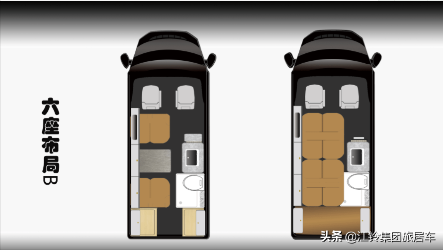 西部小野牛支持多样化的内饰定制,客户选择的是6座中置卫生间布局,这款布局中,我们对有限的空间充分利用,实现了2床3人卧的出行需求。