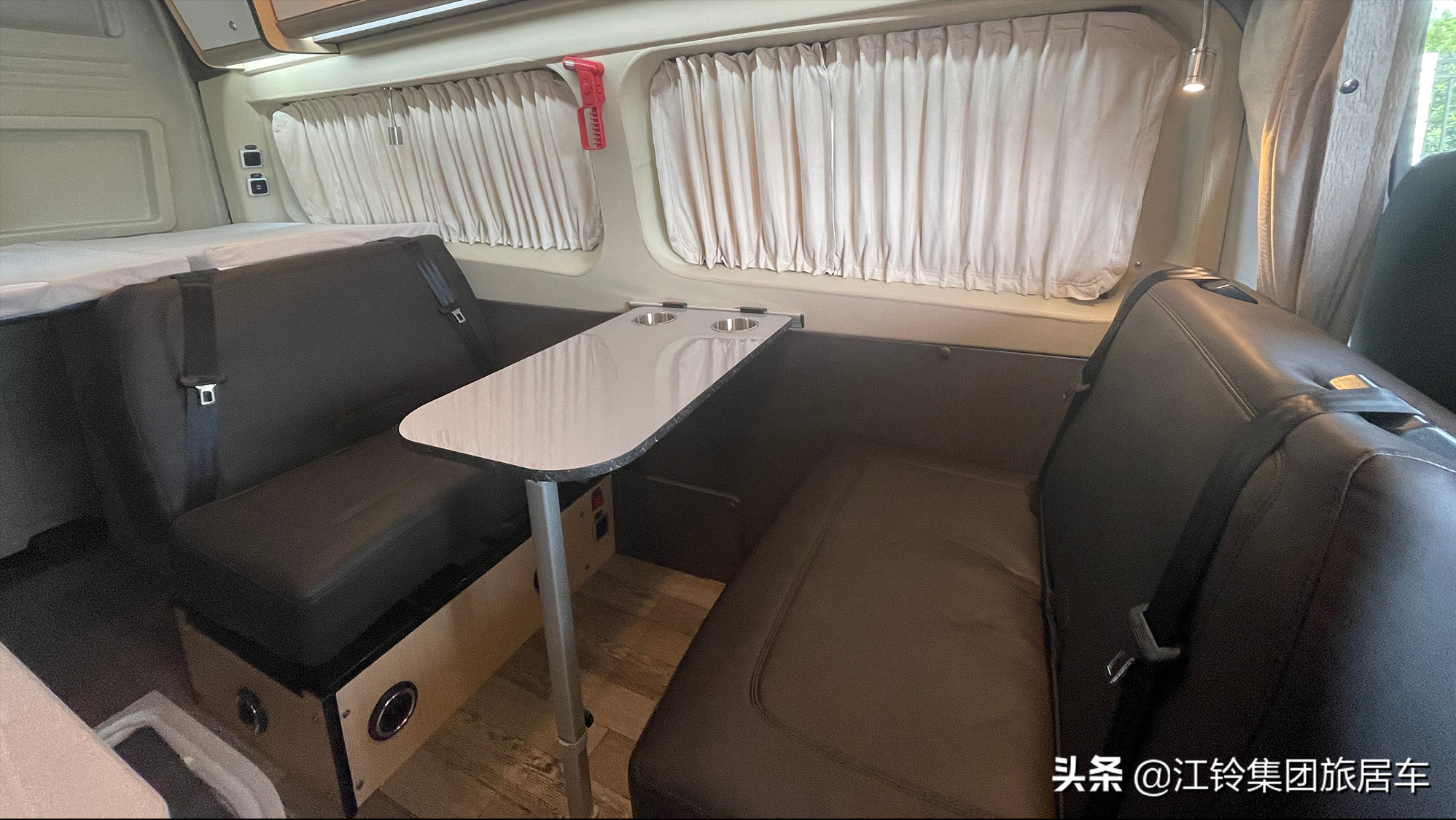 这台车的内饰是根据原车内部三维尺寸进行模具化开发设计的,相较于行业内普遍采用的板材包覆的内饰制作方式,更加轻量化和环保,可使您在车辆使用时燃油更为经济、旅居环境更为健康。